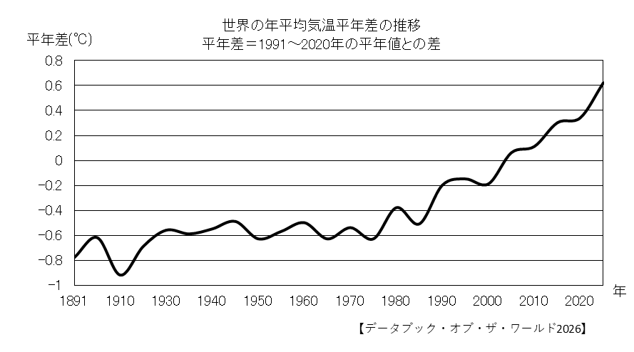サンゴ礁で形成された太平洋の島国は標高の低い国々が多い。下のグラフから読み取れるのは,世界の平均気温の上昇であり,ここから「地球温暖化」がもたらす影響を考えればよい。つまり「海水面の上昇」がキーワードとなる。